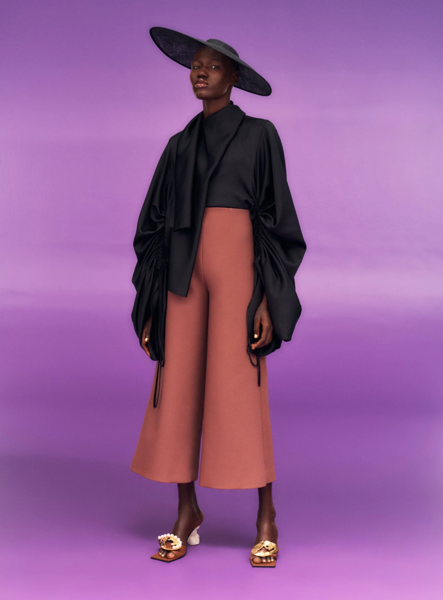 The Tala is a statement style featuring dramatic voluminous sleeves and neck sash.