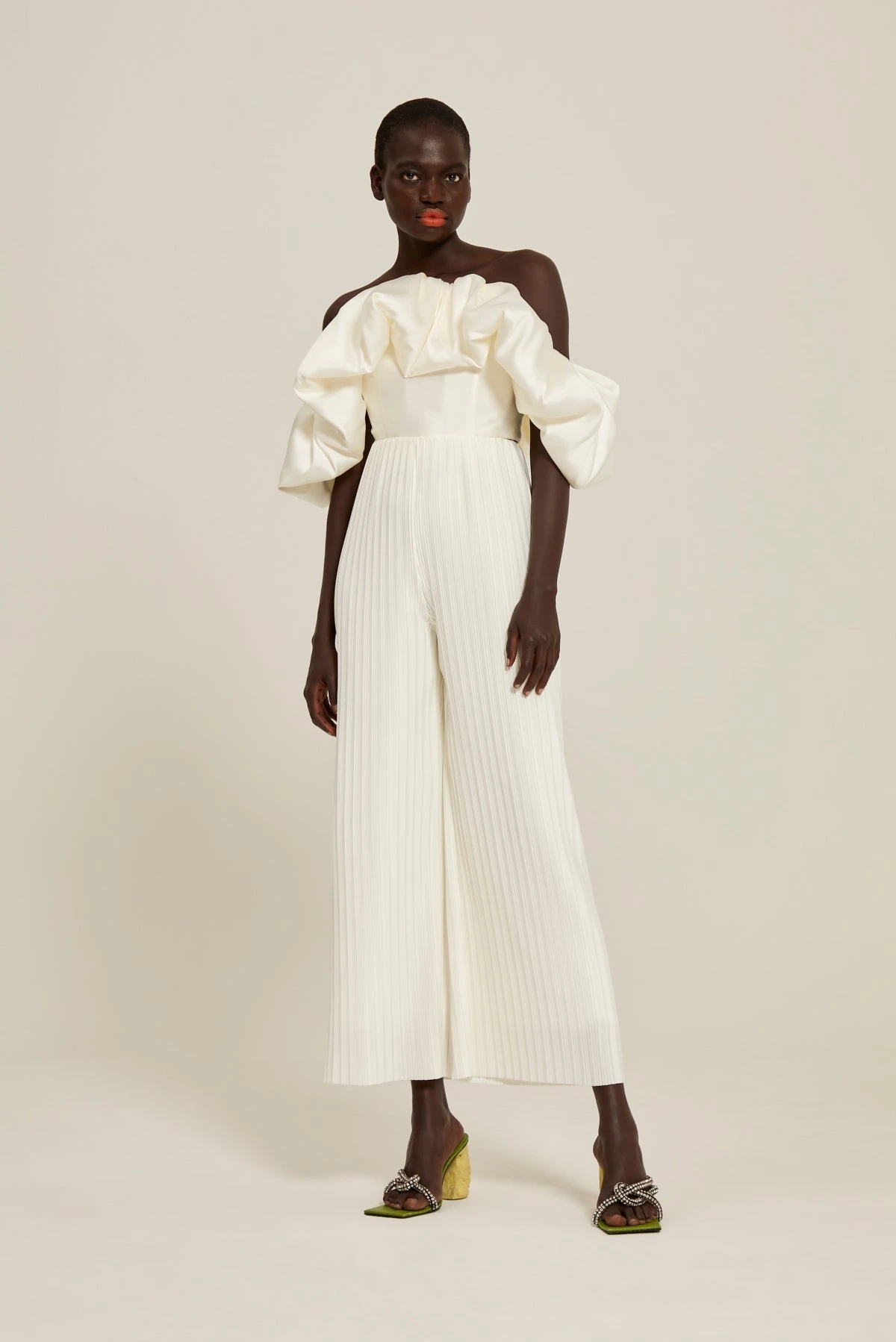 The Zoya is a high-waisted trouser with a relaxed wide-leg in signature pleat.